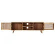 Ta HiFi omarica je izdelana iz trdnega mangovega lesa, trdega lesa z gostimi vzorci. Robusten mangov les lahko prenaša težo ter se učinkovito spopada z obrabo in uporabo. Prav zato je ta čudovito zasnovana omarica izjemno stabilna, vzdržljiva in vpadljiva. Ta stereo omarica je v celoti izdelana ročno, lepi vzorci lesa pa zagotavljajo, da je vsak kos pohištva čudovit in malo drugačen od drugih. Ta nizka omarica se ponaša z 2 predelkoma in 2 prostoroma z vrati, zato nudi dovolj prostora za shranjevanje večpredstavnostnih naprav, knjig ter ostalih stvari.
