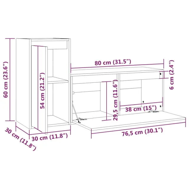 Te klasične TV omarice s trendovskim in praktičnim dizajnom so izdelane tako, da bodo postale ključna točka vašega prostora. Te viseče omarice so izdelane iz trdne borovine, ki zagotavlja moč, vzdržljivost in dolgotrajno služenje. Stenske enote so idealne za odlaganje stvari, kot so knjige, zbirateljski predmeti, okraski in drugo. Prazno steno spremeni v nekaj posebnega. Te lebdeče omarice so tudi preproste za čiščenje z vlažno krpo. Prosimo, upoštevajte: Vijak(i) in čep(i) za notranjost stene ni(so) priložen(i). Poiščite in uporabite vijak(e) in čep(e), primerne za vaše stene. Če ste negotovi, poiščite strokovni nasvet. Pozorno preberite in sledite vsakemu koraku v navodilih.Material: Trdna borovinaPotrebno sestavljanje: DaPaket vsebuje:1 x TV omarica: 80 x 30 x 35 cm (Š x G x V)1 x TV omarica: 30 x 30 x 60 cm (Š x G x V) 3100109