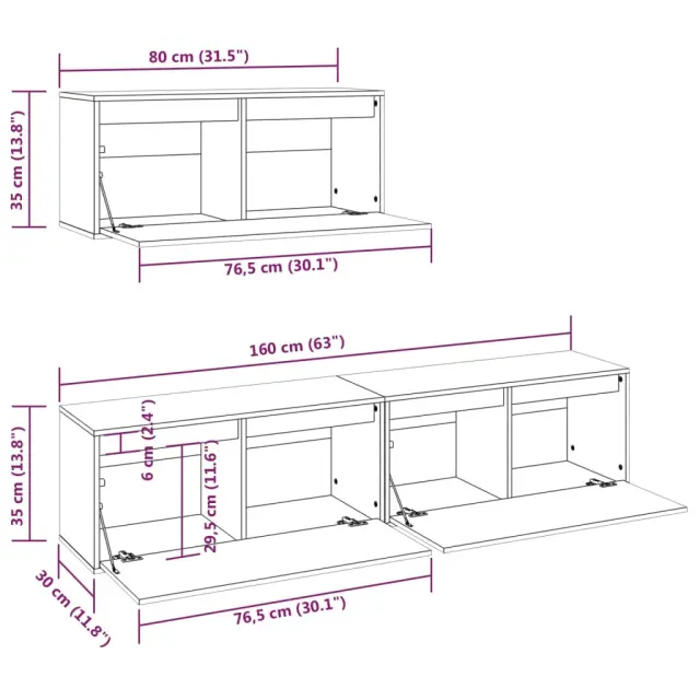 vidaXL TV omarica 3 kosi bela trdna borovina