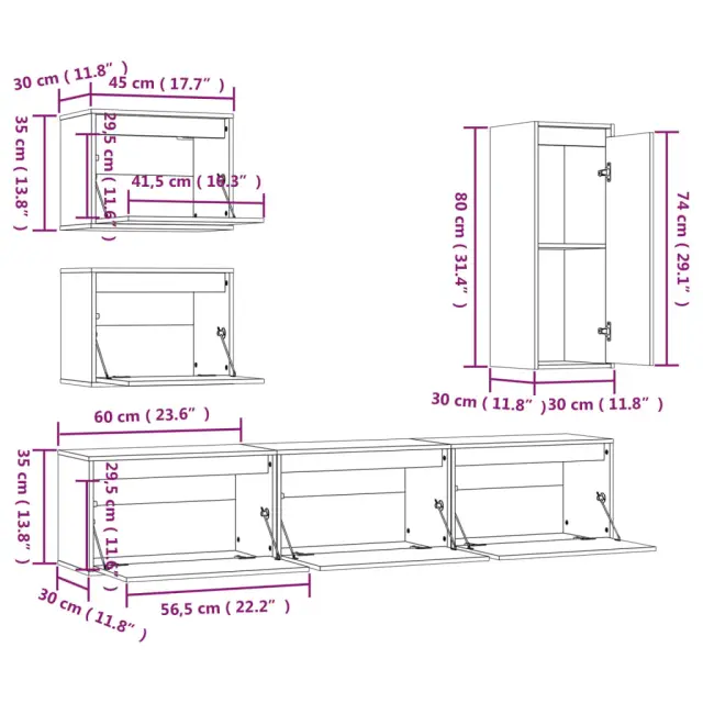 vidaXL TV omarica 6 kosov bela trdna borovina