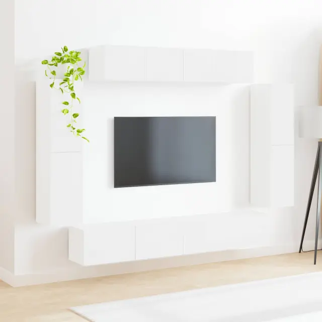 vidaXL TV omarica 8 pcs Visok sijaj bela