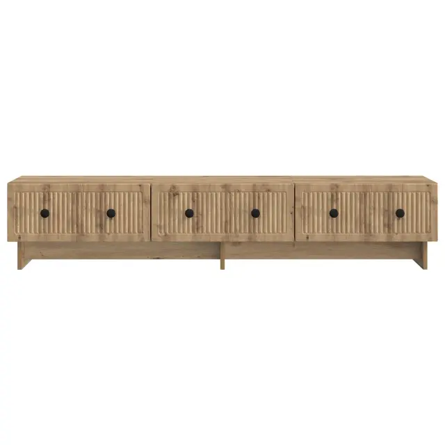 Ta stilna nizkokotni omarica združuje vintage šarm in moderno praktičnost, kar jo dela kot elegantno dopolnilo za vsak dnevni prostor. Sodobna TV omarica iz inženirskega lesa s super koncem je popolna izbira za tiste, ki cenijo funkcionalnost in estetiko. Njen nizki dizajn nudi stabilno podlago za tvojo televizijo in dosti shranjevanja za multimedijske potrebščine, hkrati pa se lepo sklada z dekorjem v sobi. Idealna je za mestne stanovanja ali tradicionalne domove, njen vintage stil očara v različnih notranjih okoljih.