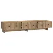 • Praktične možnosti shranjevanja vključujejo predale in predelke iz inženirskega lesa za lažje shranjevanje medijskih naprav in dodatkov. Predali se gladko odpirajo, predelki pa so primerni za knjige, DVD-je, igre ali dekorativne kose.