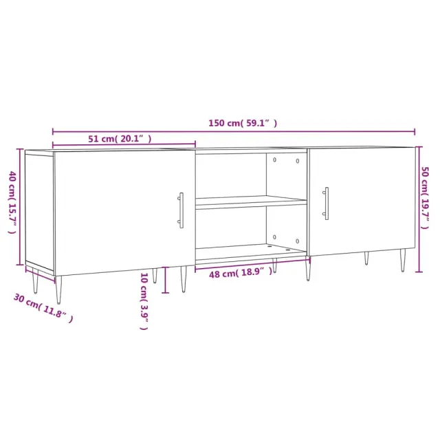 vidaXL TV omarica bela 150x30x50 cm inženirski les