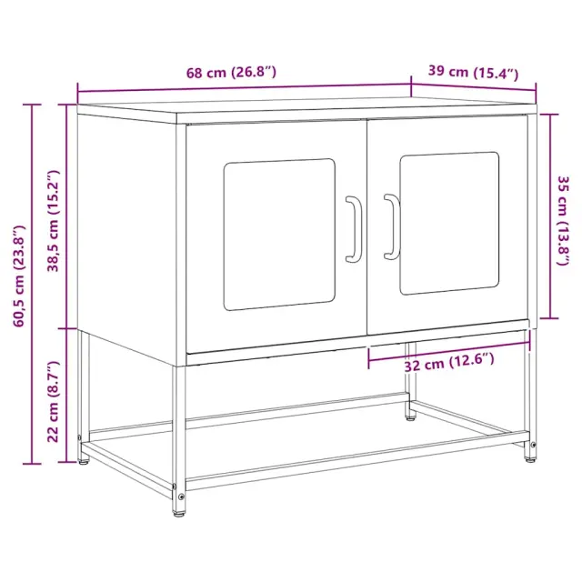 Ta omarica za televizor je dekorativna in praktična za shranjevanje, zato je odličen dodatek za vaš dom. Stabilen in dolgotrajen okvir: Jeklo je močno, stabilno in trpežno, zato je idealna izbira za številne aplikacije, od proizvodnje pohištva do gradbeništva.Praktični ročaji: Stojalo je opremljeno z ročaji, ki zagotavljajo udoben oprijem, omogočajo enostavno odpiranje in zapiranje omarice, hkrati pa ji dodajajo dodatno lepoto.Veliko prostora za shranjevanje: Na klopi za tv je dovolj prostora za shranjevanje jedilnega pribora in drugih gospodinjskih predmetov, da so ti urejeni in na dosegu roke.Kovinske noge: Kovinske noge dodajo vaši notranjosti umirjen slog, hkrati pa zagotavljajo stabilnost.Široka uporaba: Uporabite jo lahko kot omarico za kopalnico ali kuhinjsko omarico ali kot elegantno omaro za shranjevanje v spalnicah, toaletnih prostorih, vhodih, hodnikih in pisarnah, jedilnicah in drugih bivalnih prostorih. Opozorilo:Za preprečitev prevračanja je treba ta izdelek uporabiti s priloženo napravo za pritrditev na steno.Barva: BelaMaterial: Hladno valjano jekloDimenzije: 68 x 39 x 60,5 cm (D x Š x V)Potrebno sestavljanje: Da 853337