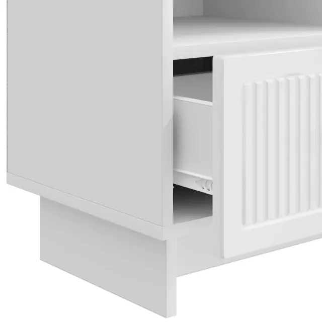 • Funkcionalna zasnova shranjevanja: Kabinet ponuja obilo prostora z velikimi predali. Ta lastnost služi tako praktičnim potrebam kot vizualni privlačnosti, tako da so tvoje elektronske naprave in ostalo vedno organizirane in na dosegu roke.