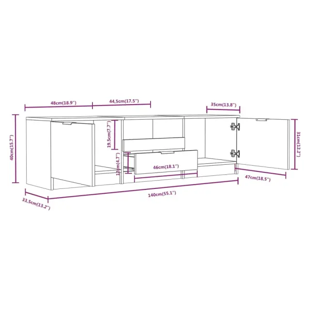 Trendovska TV omarica je funkcionalen in idealen dodatek za ustvarjanje privlačnih in modernih notranjih prostorov. Vrhunski material: Konstruiran les se ponaša z izjemno kakovostjo, gladko površino ter močjo, stabilnostjo in odpornostjo na vlago.Veliko prostora za shranjevanje: Stereo omarica ima tri predelke in en predal za organizirano shranjevanje DVD predvajalnikov, igralnih konzol, sprejemnikov in nosilcev medijev.Trdna površina: TV stojalo ima trdno površino, zaradi česar je idealno za razstavljanje okrasnih predmetov, okvirjev za fotografije, lončnic itd.Barva: ČrnaMaterial: Konstruiran lesDimenzije: 140 x 35 x 40 cm (Š x G x V)Potrebno sestavljanje: Da 811449