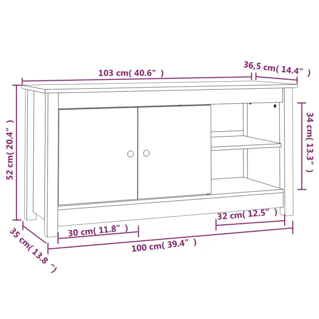 vidaXL TV omarica črna 103x36,5x52 cm trdna borovina