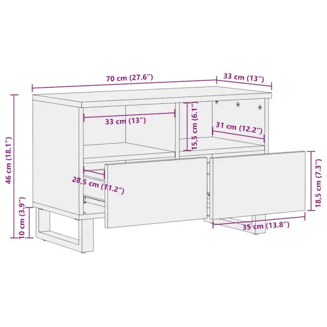 vidaXL TV omarica črna 70x33x46 cm trden mangov les