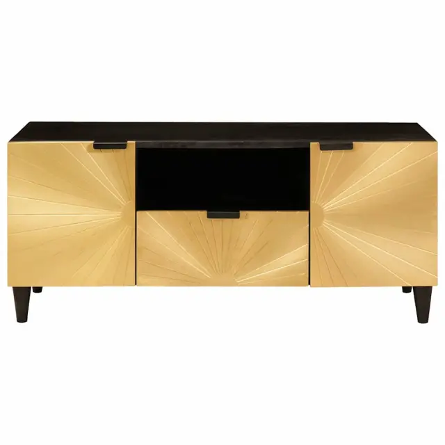 vidaXL TV omarica Črna in zlata 105 x 33 x 46 cm trden mangov les