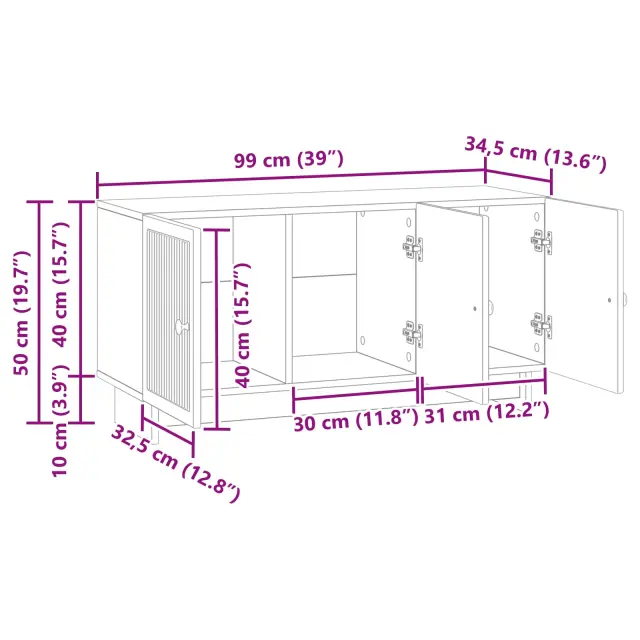 • Splošne dimenzije: 99 x 34,5 x 50 cm (D x Š x V)
