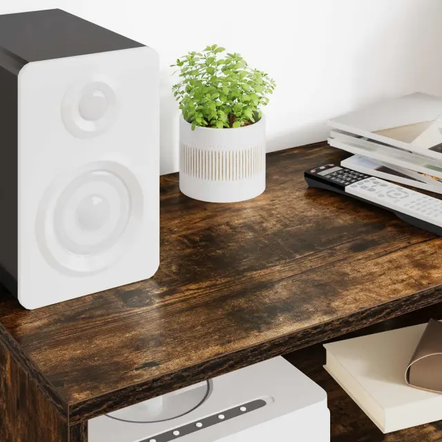 • Vključeni sestavni deli: S policami iz trpežnih materialov ta omara nudi enostavno rešitev za organizacijo različnih medijskih naprav in dekorativnih predmetov ter zadostuje potrebam tehnološko usmerjenih gospodinjstev.