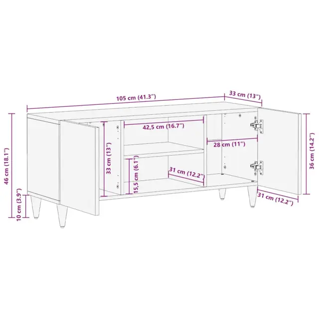 vidaXL TV omarica s polico Bela 105 x 33 x 46 cm trden mangov les