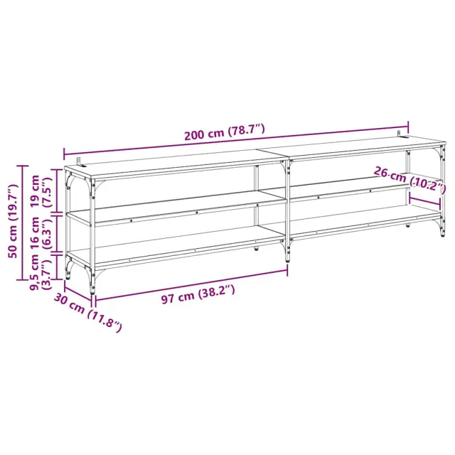 vidaXL TV omarica Star les 200 x 30 x 50 cm Inženirski les in železo