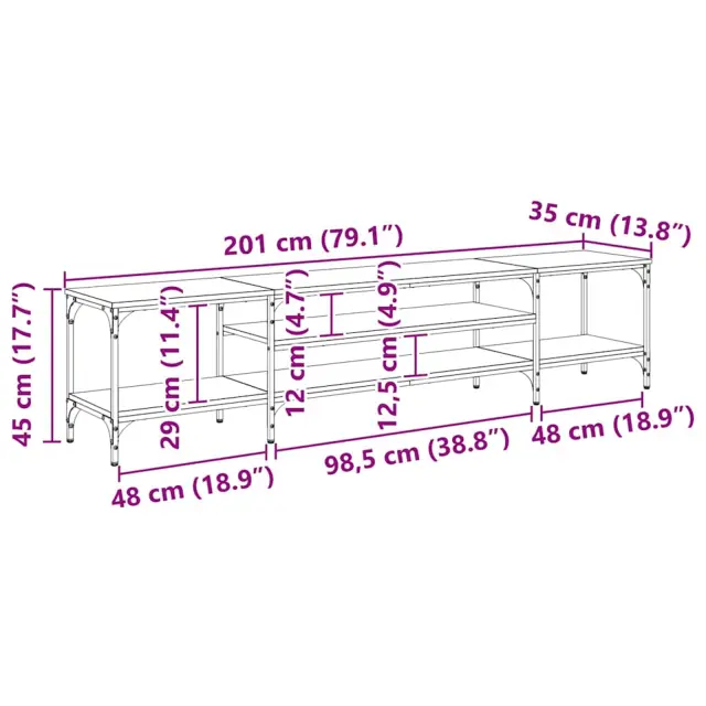 vidaXL TV omarica Star les 201 x 35 x 45 cm Inženirski les in železo