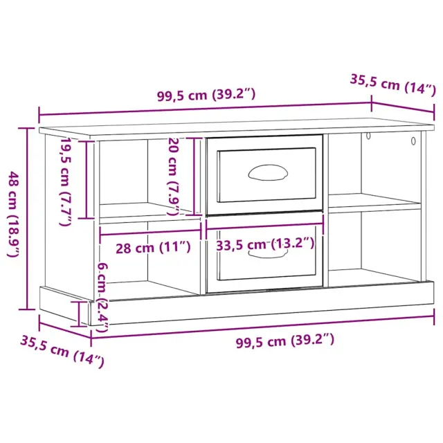 vidaXL TV omarica Umetni hrast 99,5 x 35,5 x 48 cm Konstruiran les