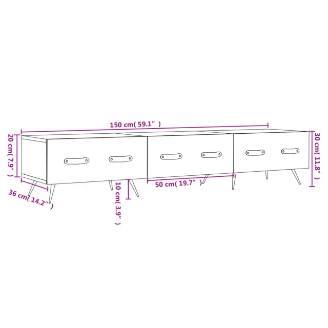 vidaXL TV omarica visok sijaj bela 150x36x30 cm inženirski les