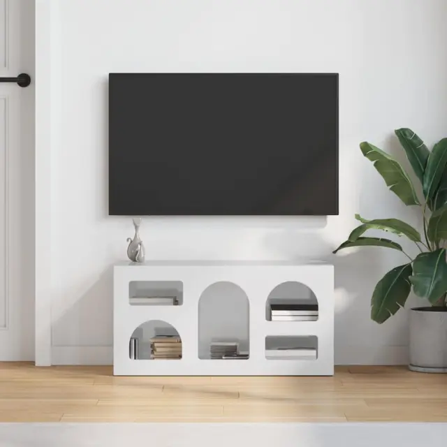 vidaXL TV omarica Visok sijaj bela 80 x 35 x 40 cm Konstruiran les