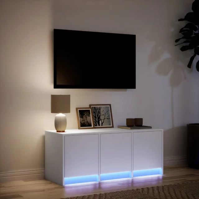 vidaXL TV omarica z LED bela 97x34x40 cm inženirski les