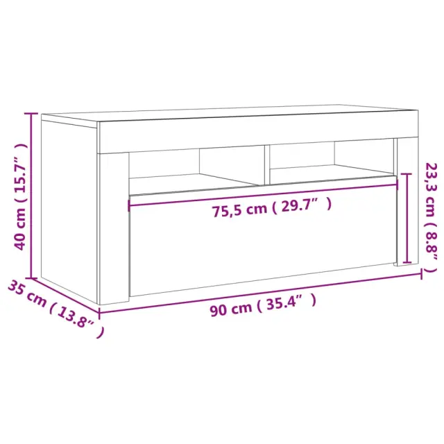 vidaXL TV omarica z LED lučkami sonoma hrast 90x35x40 cm