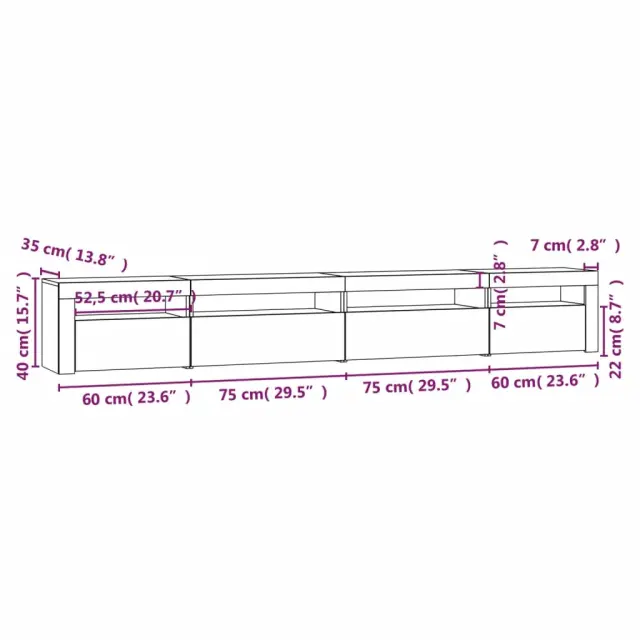 vidaXL TV omarica z LED lučkami betonsko siva 270x35x40 cm
