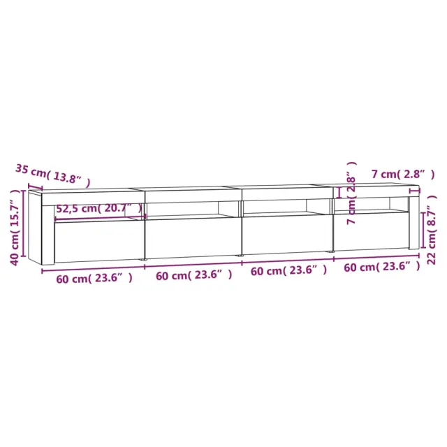 vidaXL TV omarica z LED lučkami siva sonoma 240x35x40 cm