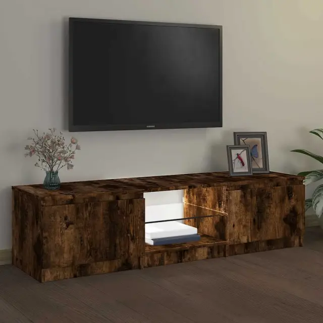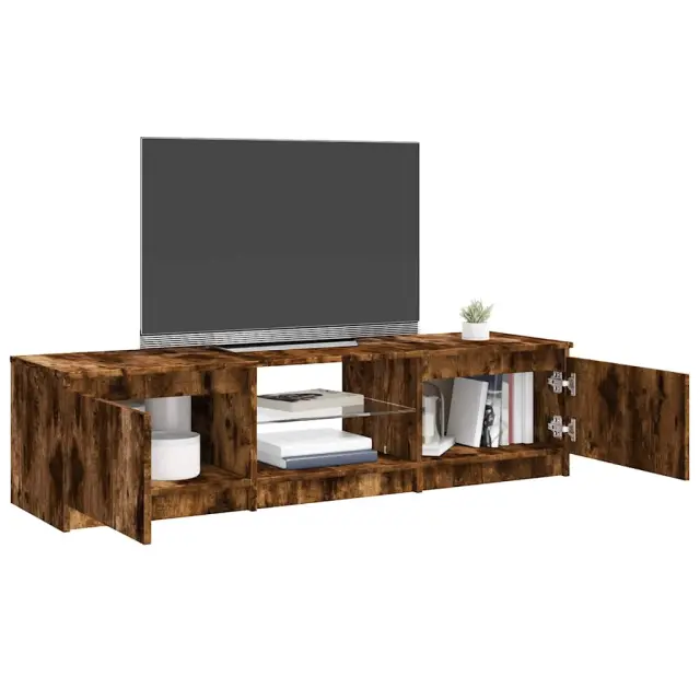 vidaXL TV omarica z LED lučkami dimljeni hrast 140x40x35,5 cm