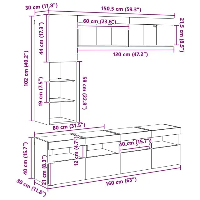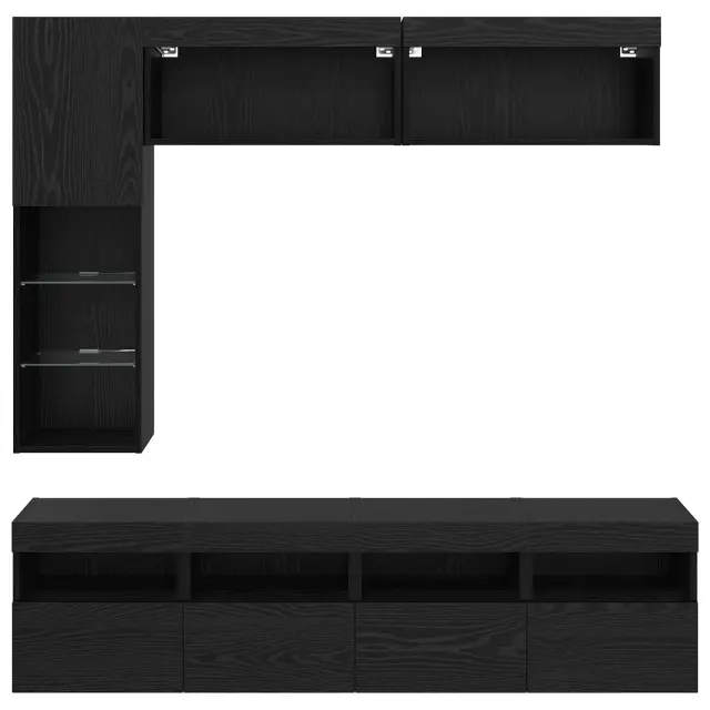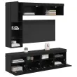 vidaXL TV omarica z LED lučmi 7 pcs Črna Orehovina Konstruiran les