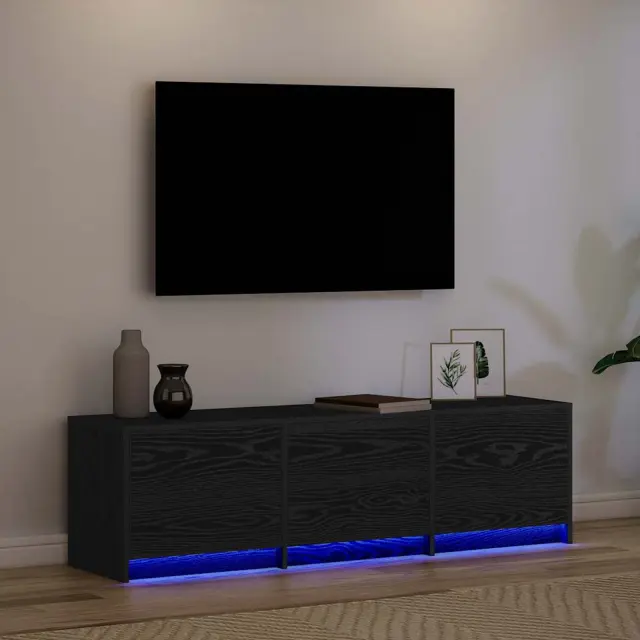 vidaXL TV omarica z LED lučmi Črna Orehovina 140 x 34 x 40 cm