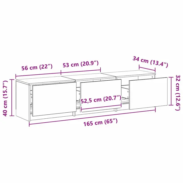 vidaXL TV omarica z LED lučmi Črna Orehovina 162 x 34 x 40 cm