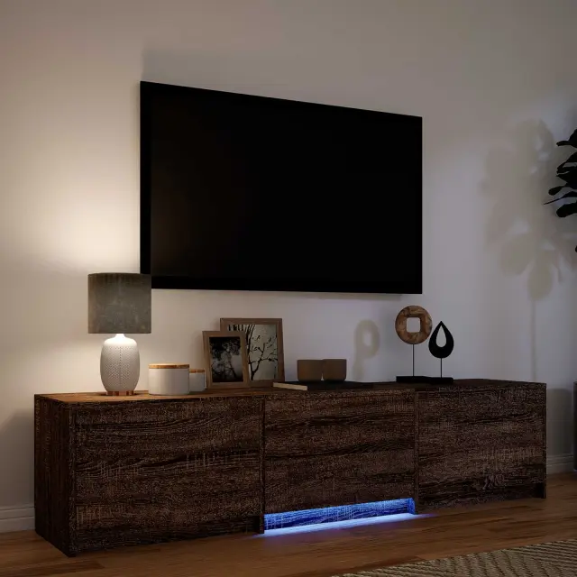Ta TV omarica z LED lučmi je zasnovana z mislijo na funkcionalnost in praktičnost. Izdelana je iz trpežnih materialov, ki podpirajo vašo medijsko opremo in ponuja prilagodljivo osvetlitev za vaš prostor.