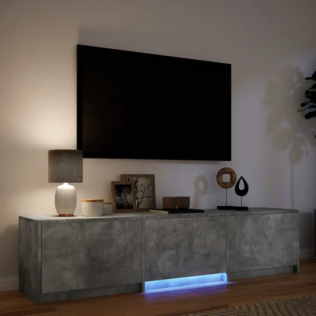 Ta TV omarica z LED lučmi je zasnovana z mislijo na funkcionalnost in praktičnost. Izdelana je iz trpežnih materialov, ki podpirajo vašo medijsko opremo in ponuja prilagodljivo osvetlitev za vaš prostor.