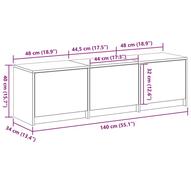 • Splošne dimenzije: 140 x 34 x 40 cm (D x Š x V)