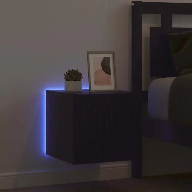 vidaXL TV stenska omara z LED lučmi Črna Orehovina 30,5 x 35 x 30 cm