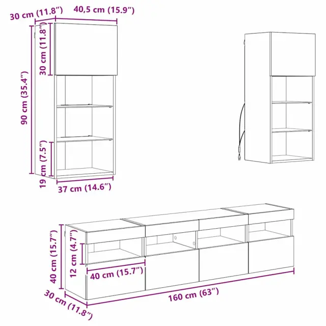 vidaXL TV stenske enote z LED 5 pcs Star les 40,5 x 30 x 90 cm