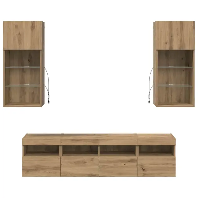 vidaXL TV stenske enote z LED 5 pcs Umetni hrast 40,5 x 30 x 90 cm