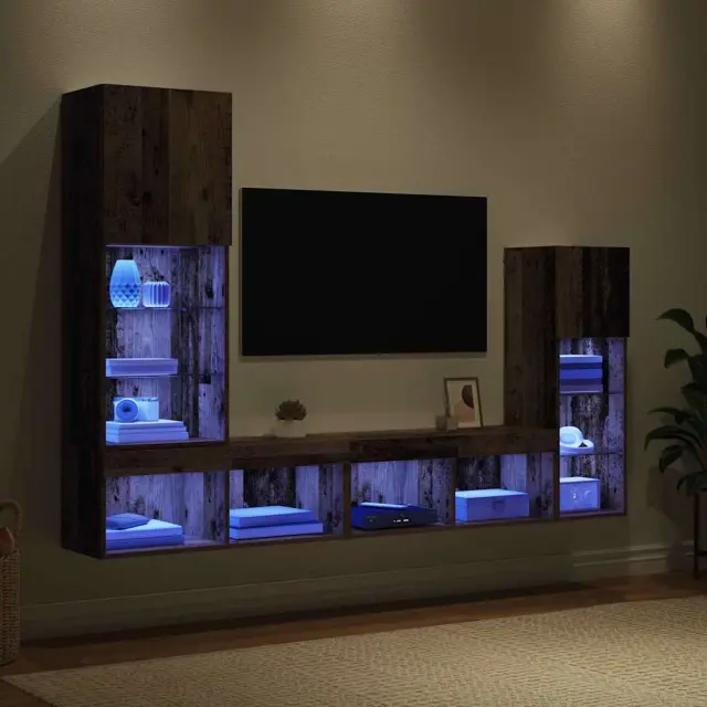 vidaXL TV stenske enote z LED lučmi 4 pcs Star les Konstruiran les