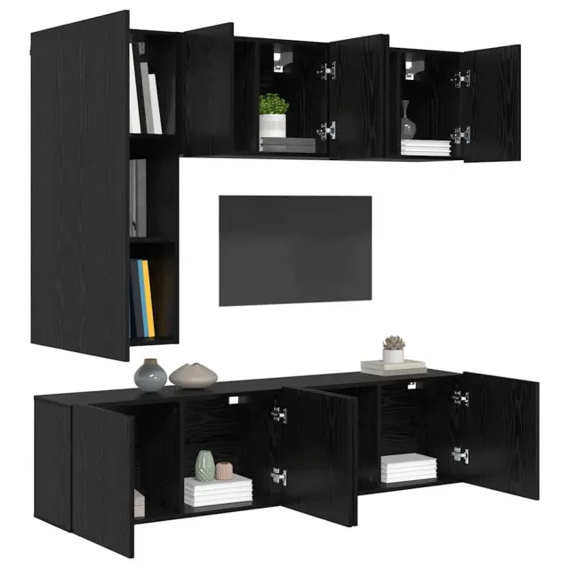 vidaXL TV zidna enota 5 pcs Črna Orehovina Konstruiran les