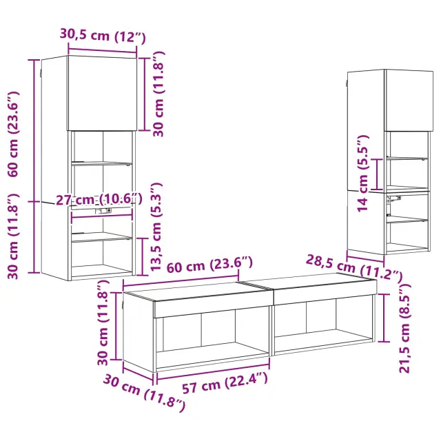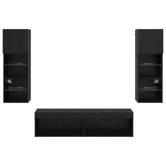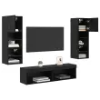 vidaXL TV zidna enota z LED lučmi 6 pcs Črna Orehovina Konstruiran les