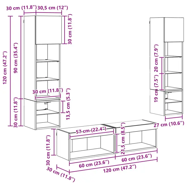 vidaXL TV zidna enota z LED lučmi 6 pcs Star les Konstruiran les