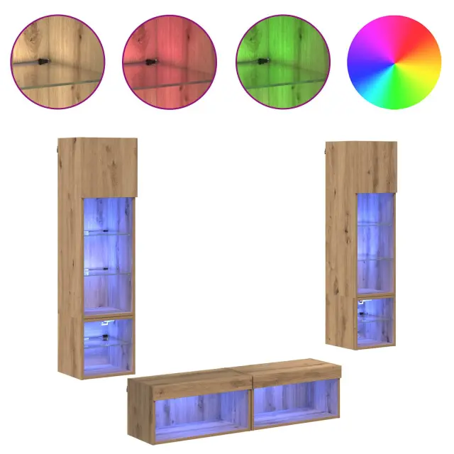 vidaXL TV zidna enota z LED lučmi 6 pcs Umetni hrast Konstruiran les