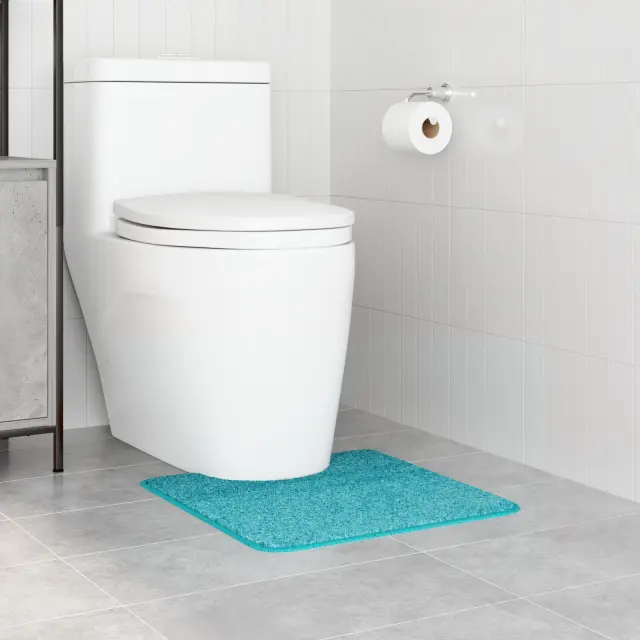 Ta turkizna okrogla kopalniška preproga je točno to, kar tvoja kopalnica potrebuje. Je udobna in izgleda super, saj meša stil s praktičnostjo. Narejena iz mehkih mikrovlak, se čudovito počuti pod nogami in dodaja sodoben pridih s svetlo barvo in okroglo obliko.