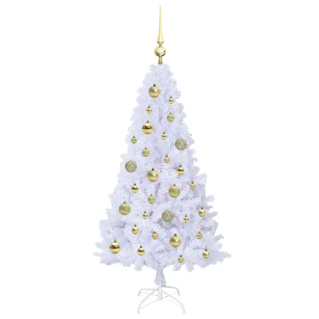 vidaXL Umestno božično drevo med 150 LED Bela 120 cm PVC in jeklo