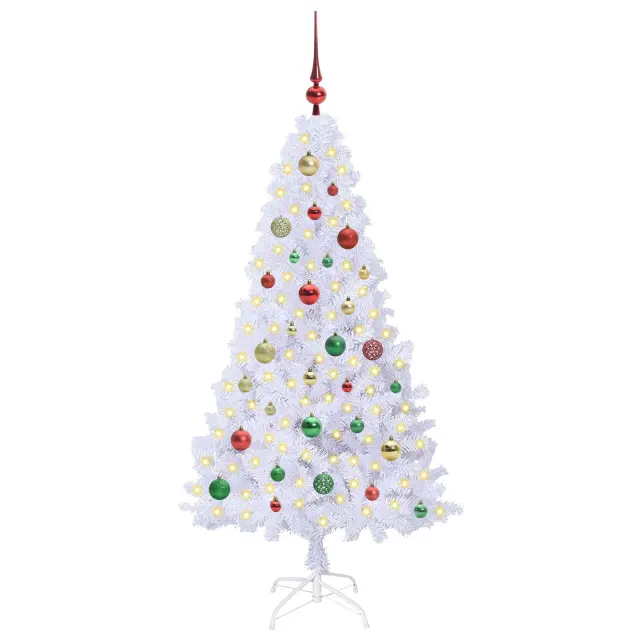 vidaXL Umestno božično drevo med 150 LED Bela 150 cm PVC in jeklo