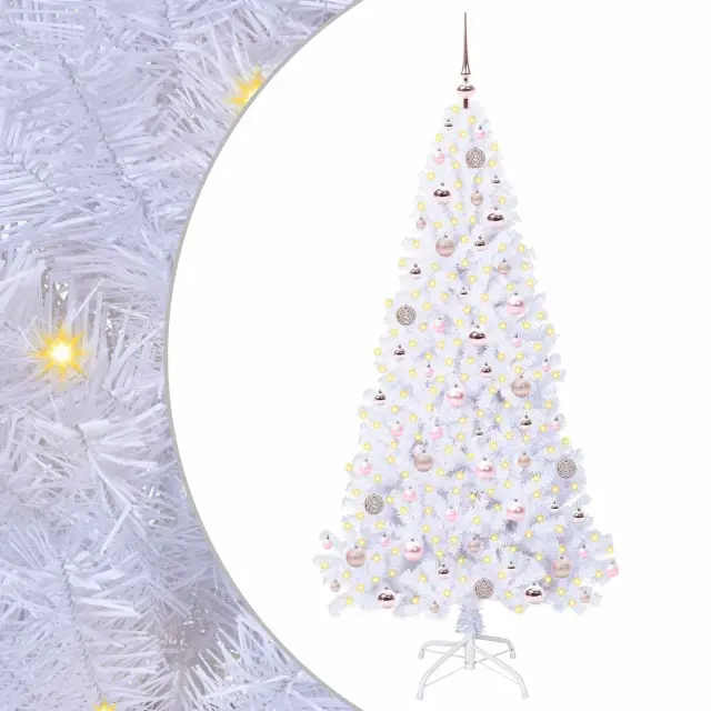 vidaXL Umestno božično drevo med 300 LED Bela 180 cm PVC in jeklo