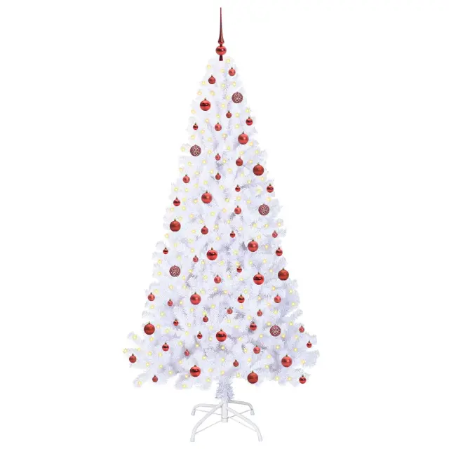 vidaXL Umestno božično drevo med 300 LED Bela 210 cm PVC in jeklo