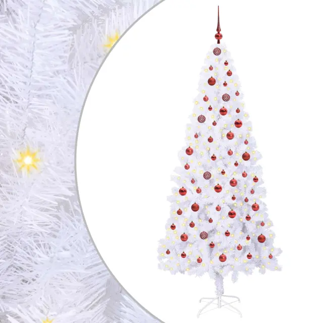 vidaXL Umestno božično drevo med 300 LED Bela 210 cm PVC in jeklo