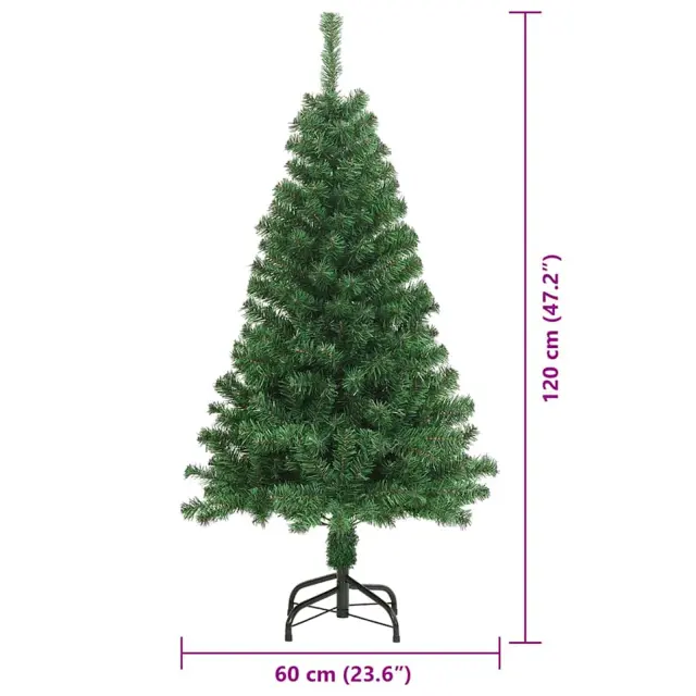 vidaXL Umestno božično drevo Zelena 120 cm PVC, jeklo in plastika