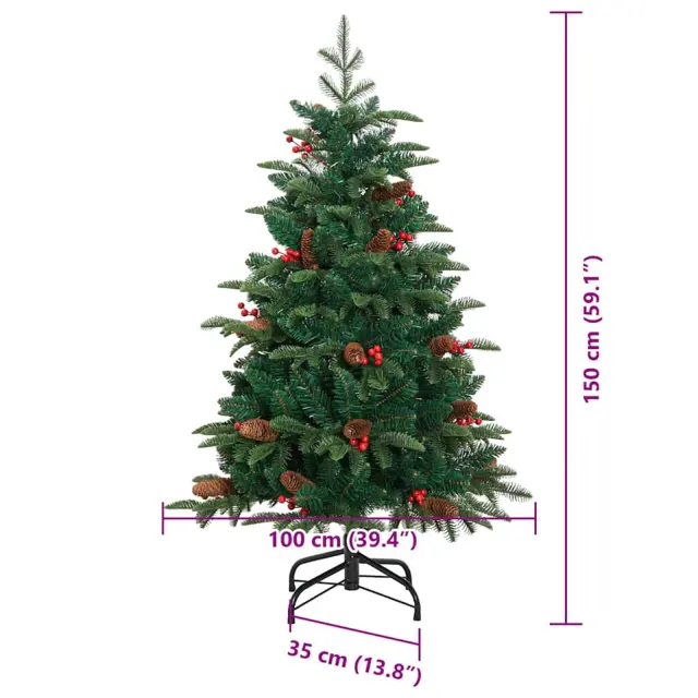vidaXL Umestno božično drevo Zelena 150 cm PVC, kovina in plastika