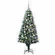 PVC umetno božično drevo združuje čar tradicionalne praznične dekoracije in udobje LED svetil. Zasnovano je za notranje in zaščitene zunanje prostore, njegova stožčasta oblika s storži in snegom prinaša praznični občutek, ki ustvari čarobno praznično atmosfero v tvoji dnevni sobi, vrtu ali na terasi. Ta lepa sezonska dekoracija prinaša duh božiča v vsak prostor.
